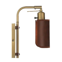 12-Inch High Wall Sconce In Natural Brass & Leather By Meridian