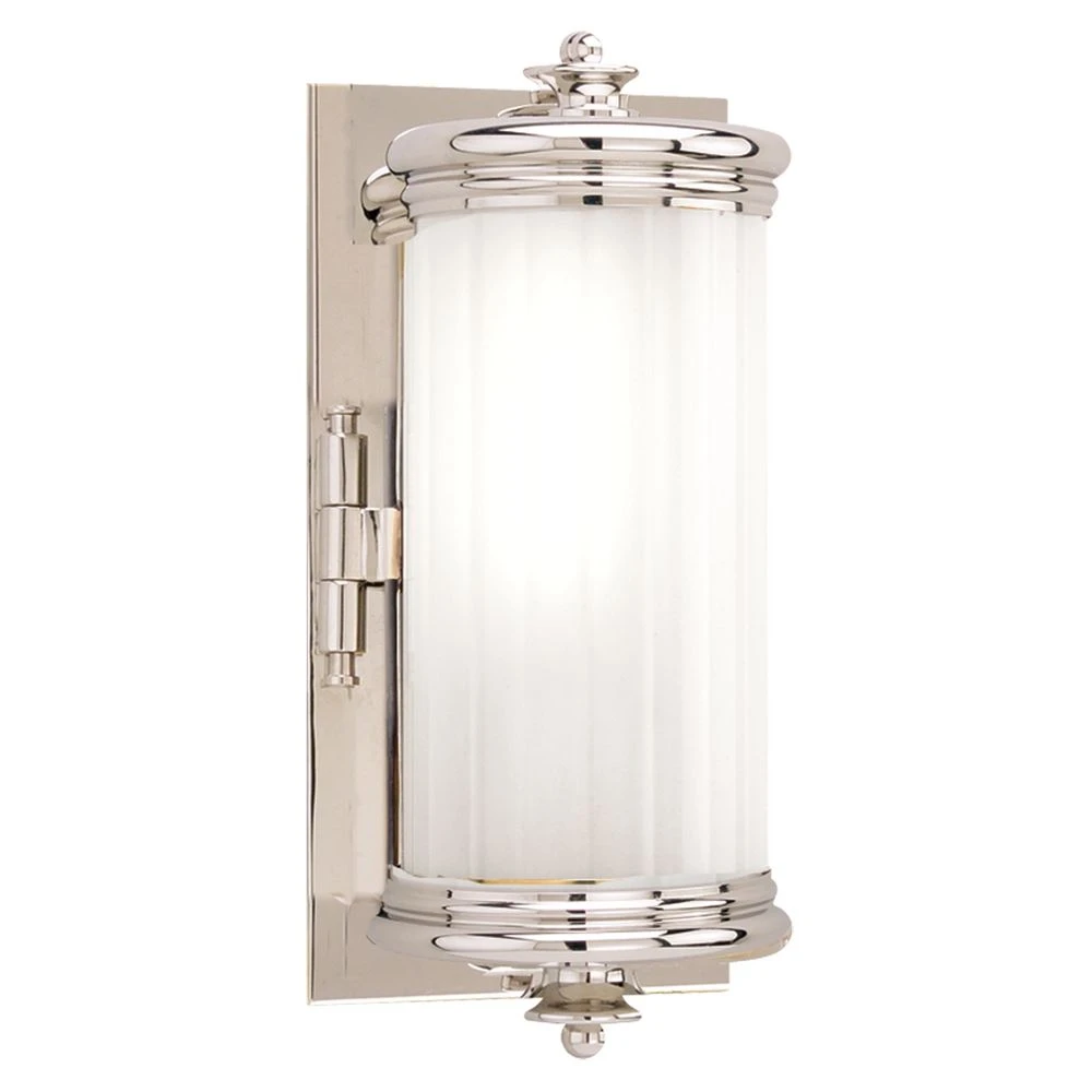 Transitional polished nickel 1-light bathroom light.