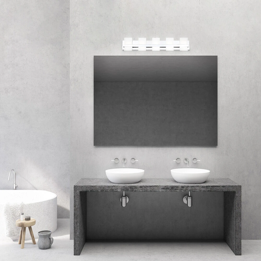 Illuminate your bathroom or powder room with the Cambridge Bath Light by Eurofase Lighting. The Cambridge features a frosted acrylic prism that is nested in a Chrome frame structure. The Cambridge produces 3000 delivered lumens at a neutral 3000K color temperature.