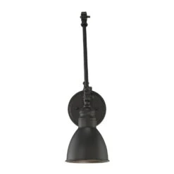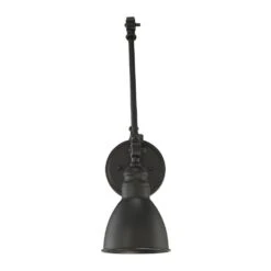 The Dakota sconce has sleek, sophisticated style with plenty of vintage charm! Understated vintage-style details, plus a rounded, conical metal shade, create a timeless look with enduring appeal. The entire sconce has a high quality matte black finish that looks terrific with any color palette and other hardware in your home; it’s both a terrific neutral, and a design that suits vintage, bohemian, mid-century modern, and many other decor styles. Adjustable arm sconces have incredible versatility: place at the bedside, use instead of table lamps, or place as task lighting for living rooms and other spaces. And this hardwired Dakota sconce holds one 60W, E-style bulb for ample, well directed light.