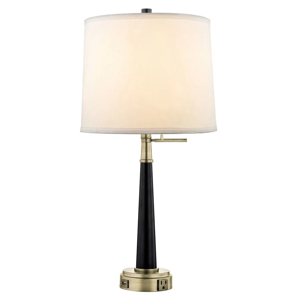 Contemporary / modern champagne bronze / ebony 1-light desk lamp with white linen fabric shade