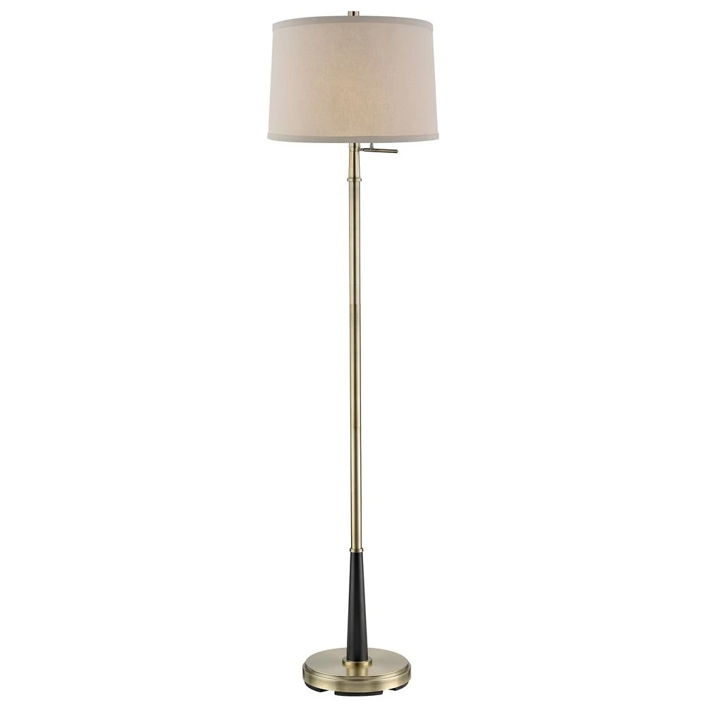 Contemporary / modern champagne bronze / ebony 1-light floor lamp with cream linen fabric shade