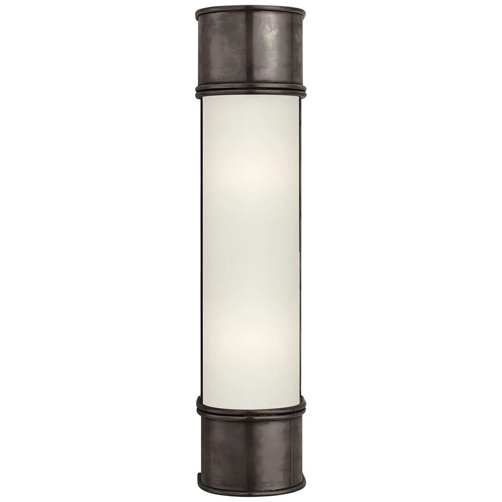 Light up your bathroom or powder room vanity with E.F. Chapman’s Oxford 18-Inch Bath Sconce by Visual Comfort. This fixture is rated for Damp Location and is perfectly suited for placement on both sides of your vanity mirror or over the top of the frame. The Oxford features a rich Bronze finish and a Frosted glass. This fixture requires two 60W maximum medium base B11 light bulbs.