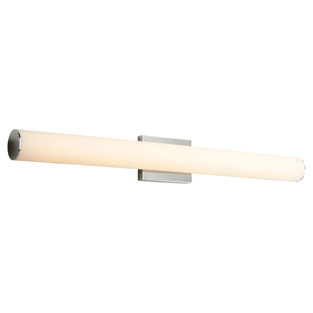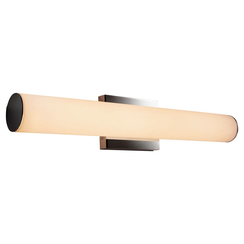 Mount the Fugit 35-Inch LED Vanity Light by Oxygen Lighting over your bathroom mirror for added light and a sleek, clean style. The Fugit features a Polished Nickel finish and a Matte White acrylic diffuser. This bath bar features two 13W integrated LED arrays at a 3000K color temperature, which produce 2205 delivered lumens and is dimmable with a standard TRIAC dimmer. This fixture is rated for Damp Location and is ADA compliant.