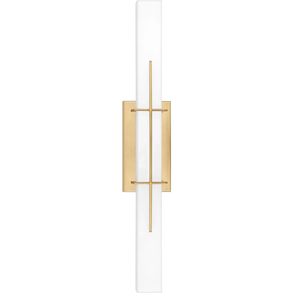 Brighten your bathroom or powder room with the Gemini LED Vanity Light by Quoizel Lighting. This fixture features a modern style in an Aged Brass finish. This piece also features an Opal Etched glass shade. The Gemini can be mounted either vertically or horizontally. This fixture is rated for use in Damp locations.