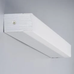 Contemporary / modern brushed aluminum 1-light bathroom light with co-extruded white acrylic shade