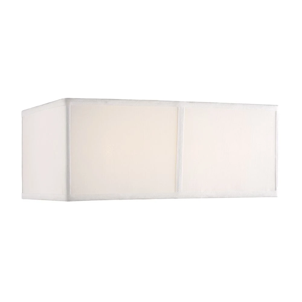 Spider rectangle lamp shade with bright white silk fabric. Top width = 16 x 10-inches, bottom width = 16 x 10-inches, slope = 6-1/2-inches. Powder coated white spider assembly.