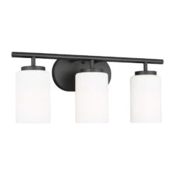 Contemporary / modern midnight black 3-light bathroom light with cased,etched cased opal etched glass shade