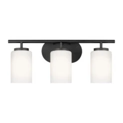Contemporary / modern midnight black 3-light bathroom light with cased,etched cased opal etched glass shade