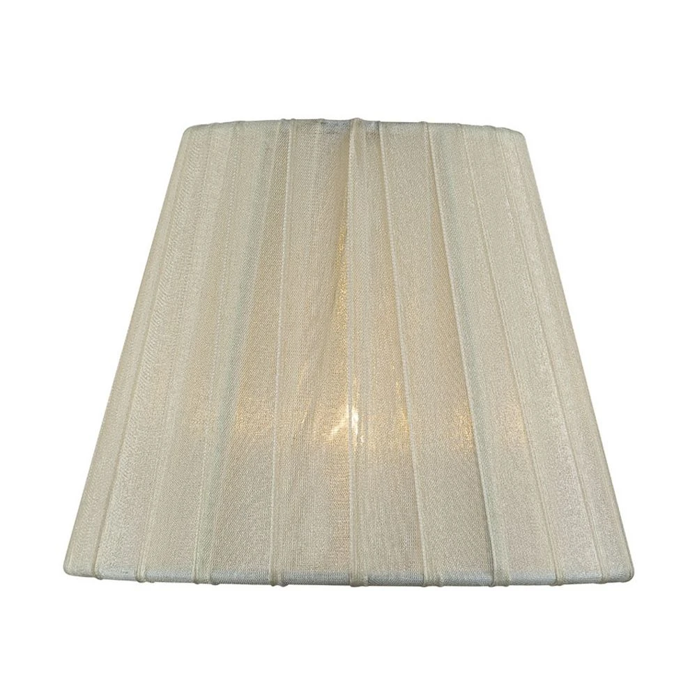 Clip-on empire lamp shade with pleated cream fabric. Top width = 3-inches, bottom width = 6-inches, slope = 5-inches.