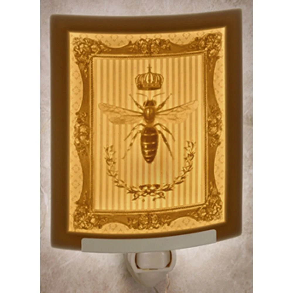 Queen Bee plug-in nightlight with on-off toggle switch. Includes 120V 7W incandescent light bulb.