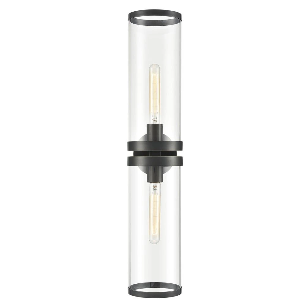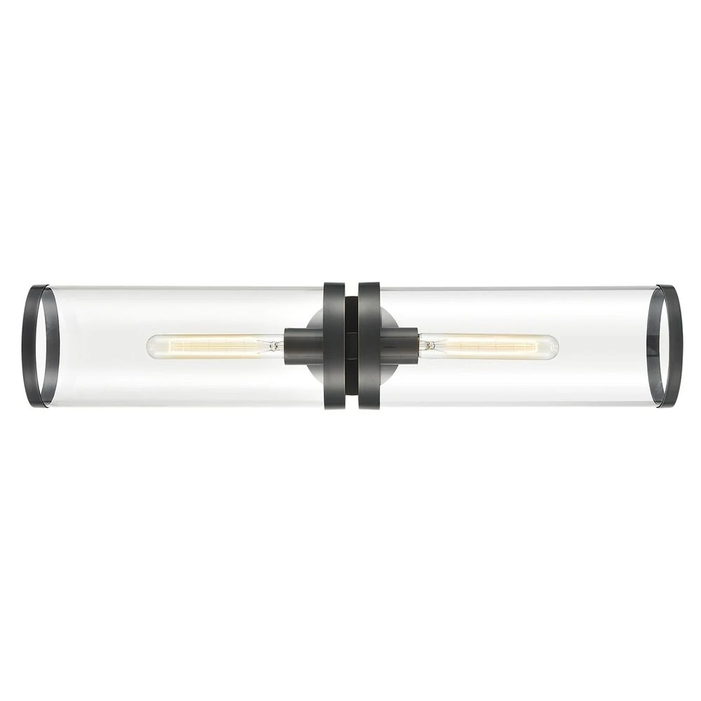 Transitional urban bronze 2-light bathroom light with clear glass shade