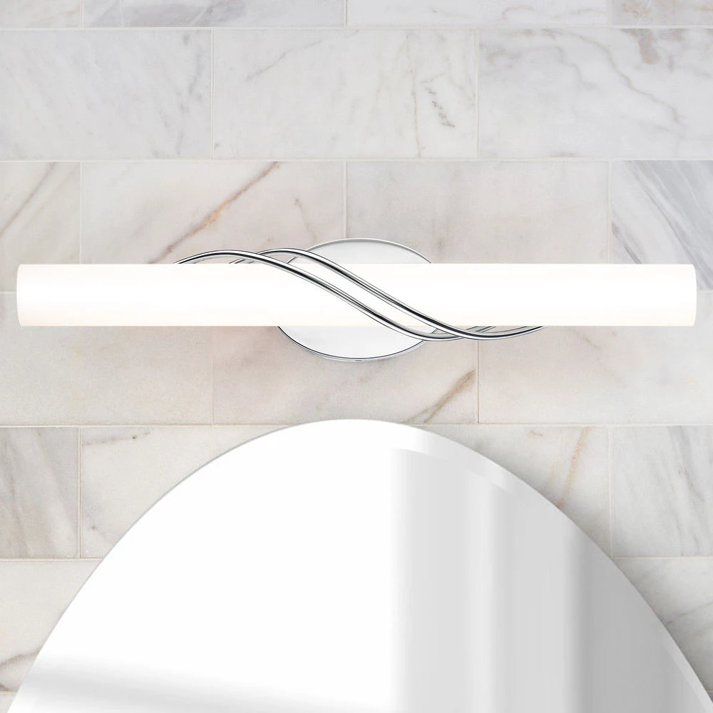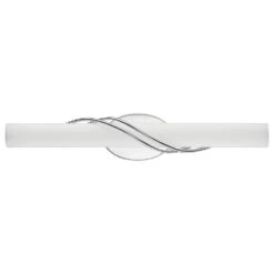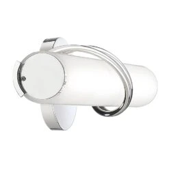 Contemporary / modern polished chrome 1-light bathroom light with etched with white painted inside glass shade