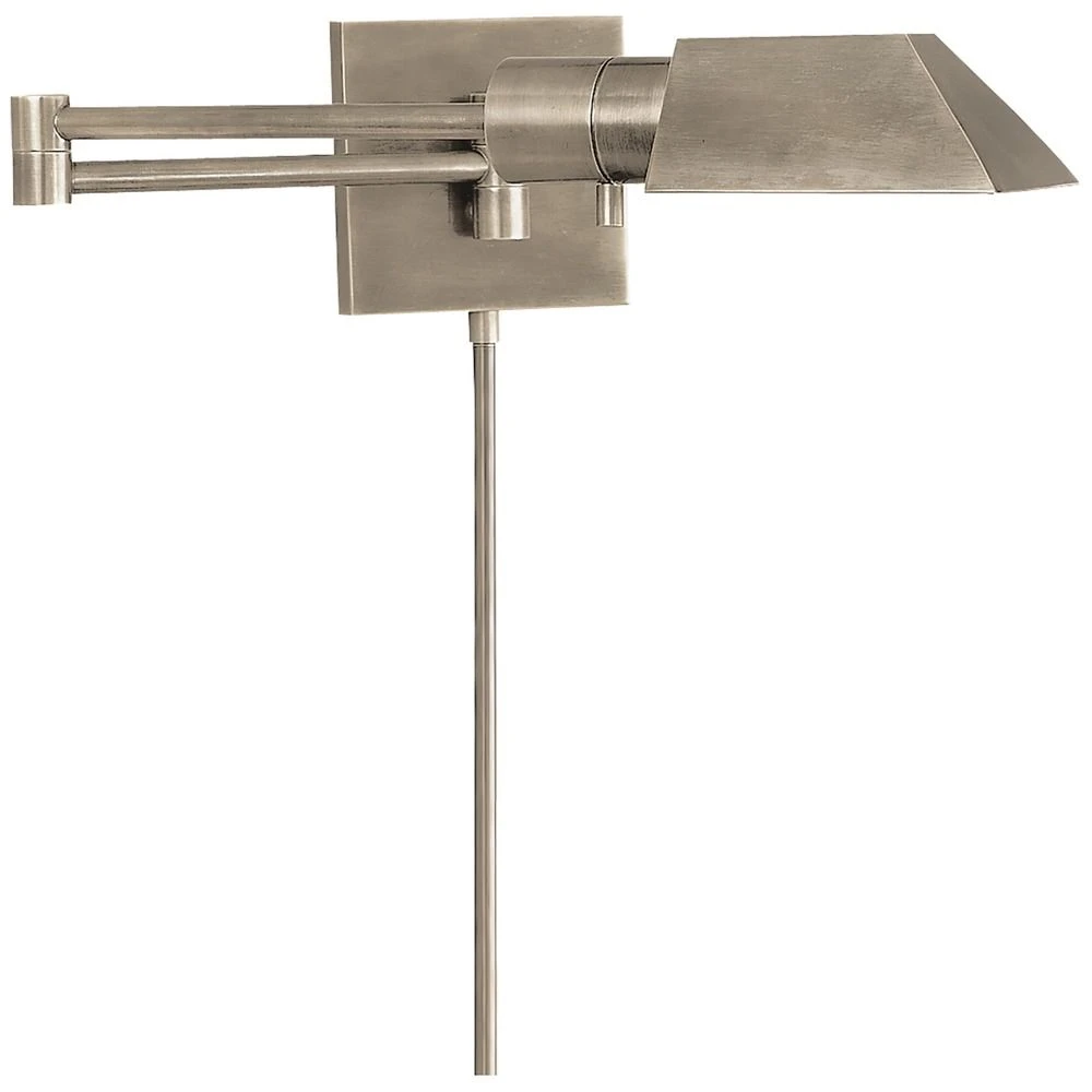 Studio VC’s Studio Swing Arm Wall Light by Visual Comfort is the ideal fixture for your home office or living room. This wall mount provides excellent task and reading light, perfect for seeing small details. The Studio Swing Arm Wall Light features a timeless Antique Nickel finish and extends from the wall up to 24 inches. It requires one 40W maximum medium base B11 light bulb, which can be dimmed with the fixture’s integrated dimmer.