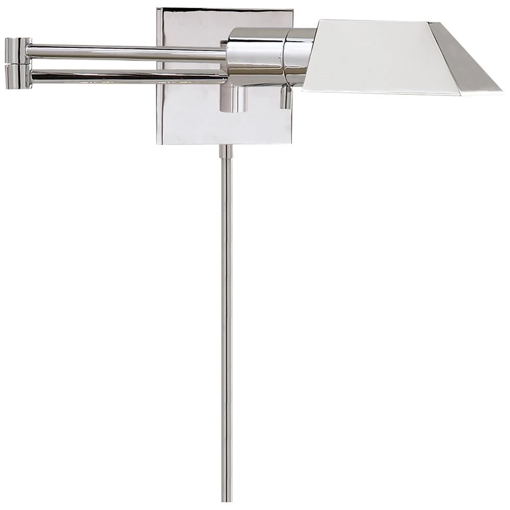 Studio VC’s Studio Swing Arm Wall Light by Visual Comfort is the ideal fixture for your home office or living room. This wall mount provides excellent task and reading light, perfect for seeing small details. The Studio Swing Arm Wall Light features a timeless Polished Nickel finish and extends from the wall up to 24 inches. It requires one 40W maximum medium base B11 light bulb, which can be dimmed with the fixture’s integrated dimmer.