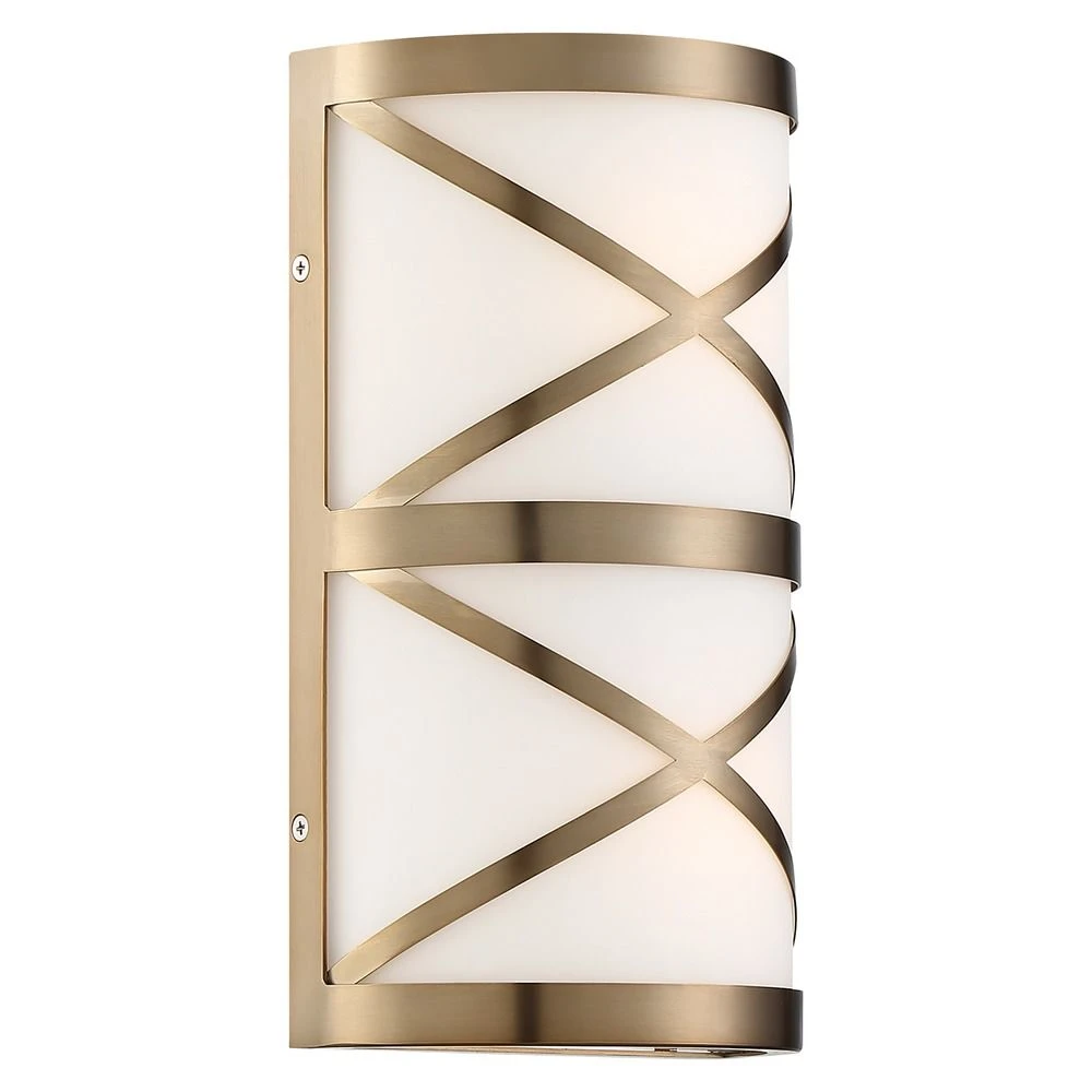 Contemporary / modern burnished brass 2-light bathroom light with satin white glass shade