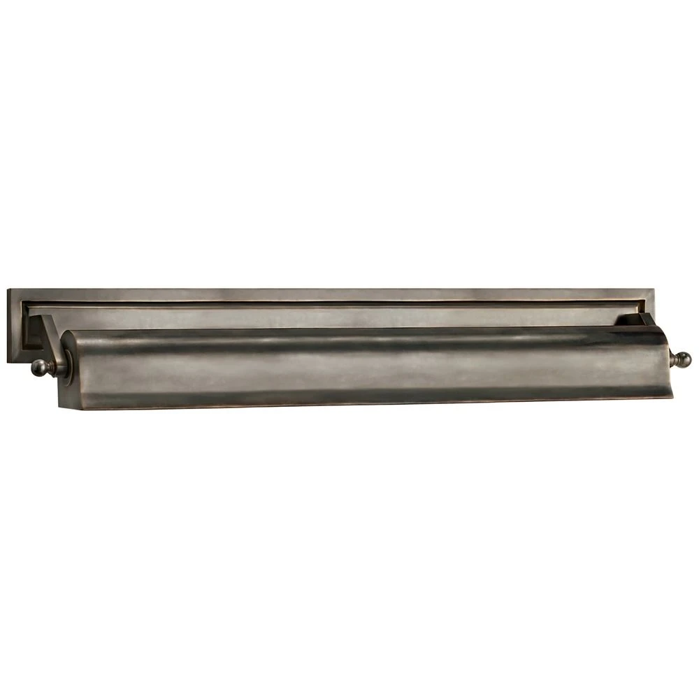 Bring your favorite photograph or canvas to life with Thomas O’Brien’s Library 22-Inch Picture Light by Visual Comfort. This wall mounted light features a 22-inch length and a Bronze finish. The metal hood pivots, so you can aim the light where it’s needed. This picture light requires two 40W maximum medium base T10 light bulbs. It is rated for Dry Location only.